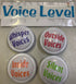 Each light has a voice level written on it in vinyl letters. - each a different colour