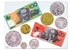 The set includes the following notes and coins:7 x $0.05, 7 x $0.10, 7 x $0.20, 7 x $0.50, 7 x $1, 7 x $2, 6 x $5, 4 x $10, 4 x $20, 2 x $50 as well as 2 x $100 notes.